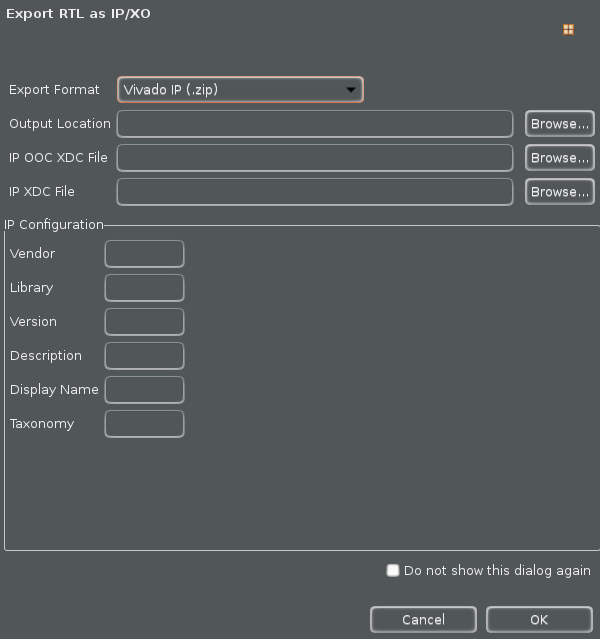 Once the design is synthesized, select Solution > Export RTL to open the dialog box so the desired IP can be generated.
