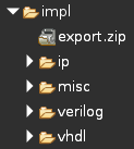 When the run is completed, expand the impl folder in the Explorer view and observe various generated directories, such as ip, misc, verilog and vhdl.