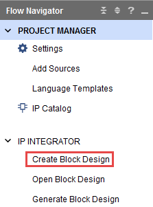 - In the Flow Navigator, click Create Block Design under IP Integrator