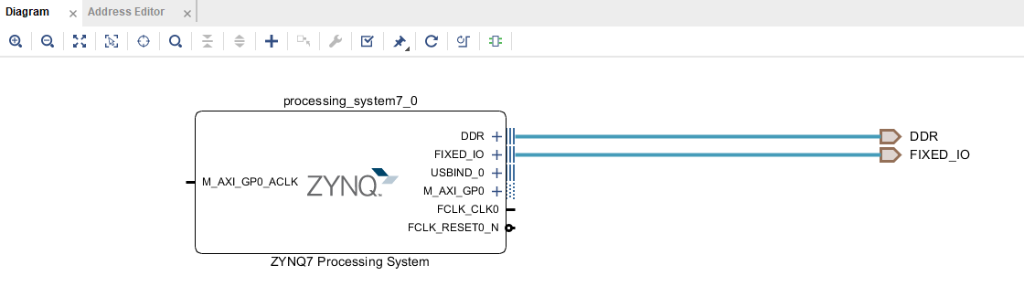 A block diagram of the Zynq should now be open, showing various configurable blocks of the